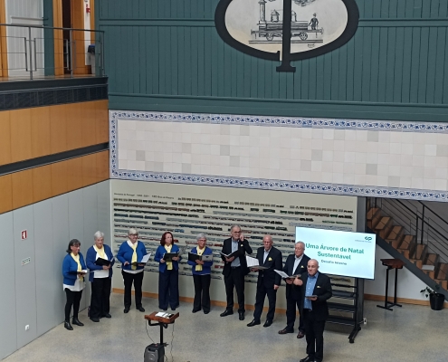 Decorreu no dia 18 de dezembro, no Rossio, uma das ações de Natal deste ano, promovidas pela CP junto dos trabalhadores, com a entrega do prémio do Desafio Interno “Uma Árvore de Natal Sustentável” e um lanche convívio.
